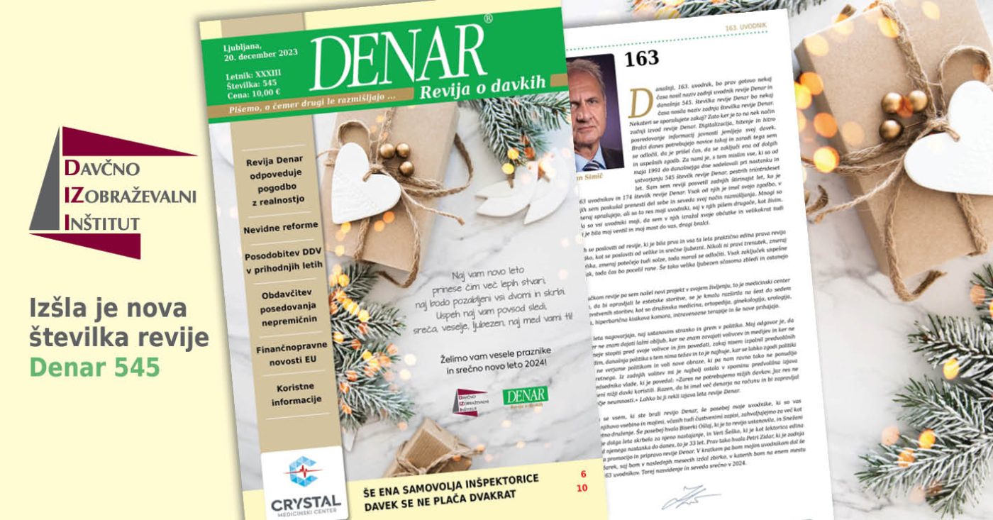 20. decembra 2023 je izšla zadnja, 545. revija DENAR, v kateri sem objavil svoj 163. uvodnik, katerega objavljam v nadaljevanju: